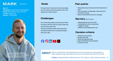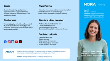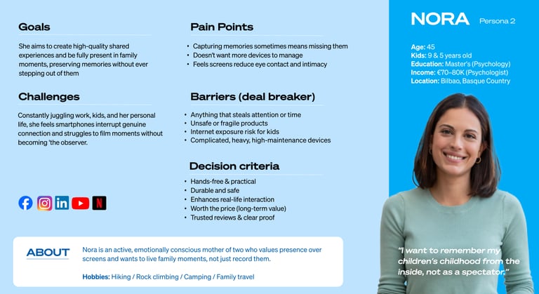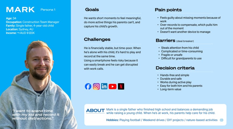 Having identified the core brand problem, our next step was to uncover the underlying human problem and explore how GoPro could solve it. Specifically, we needed to understand the reasons behind GoPro's low market penetration among families. Through targeted surveys, we developed two representative personas to help guide our strategic direction.
